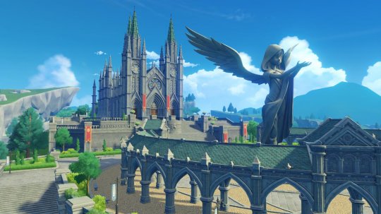 蒙德城内,木制的民居层峦叠翠,一座座风车装点当中。北面的西大风教堂也是知名度景点,但是,人们是为了向风神祈祷安全,還是为了看那边讨人喜欢的牧师呢?