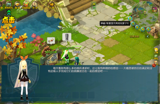 泰丽莎也是有鲜少人知的困扰:知名度爆棚的她常常被参与者们围的密不透风,造成很多参与者都没法圆满的与她沟通,泰丽莎提示初学者参与者们能够按F8临时的屏蔽周边参与者,那样就能便捷的跟她沟通咯。