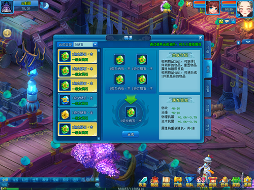 看着背包格子里放着好多个同样的物件,少侠犯了难,都早已在宠物、装备上边了应用了还剩这么多一级宝石、护符、女娲石,这卖了遗憾的是,总觉得还能用,不售吧,背包格子又不足了,要不還是断舍离吧?错!为何会有一级、二级、三级···那是由于好多个同样等级的物件能够生成高些一级的呀,大家来看看如何生成才可以为少侠提高高些的战力!