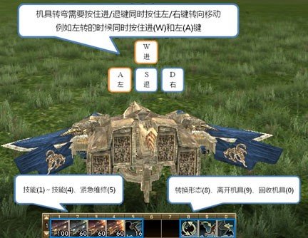 1. 登入机具后招式快捷栏将切换为驾驶情况,包括制式弹药进攻、特制弹药进攻(多种招式)、应急检修、变换形状(须要赞成变换形状的机具)、离去机具、收购机具作用。