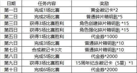活动期内内,总计进行60场赛事能够得到 15周年龄念套服(长期,无特性)。