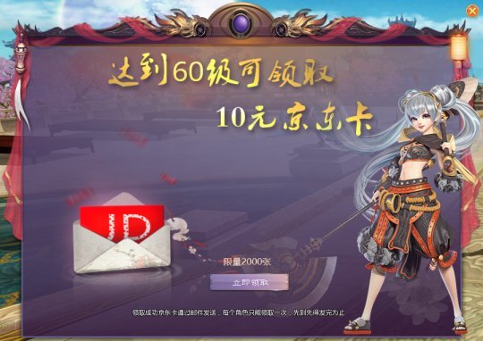 升級转化老百姓币,每日发布有动力。游戏内人物级别做到60级,就可以在游戏界面右上角推送中领到10元京东卡一份。总共2000份京东卡奖赏,先到先得,送完即止。