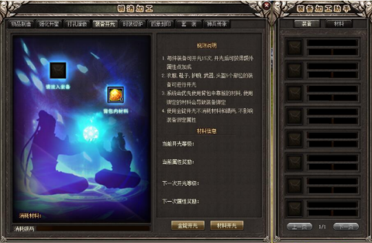 装备开光能为装备打开崭新境界,大幅提升装备特性,同一时间,为装备附上冰、火、毒、雷、风等独特破坏,当装备开光后,外观也将变得绮丽和拉风。