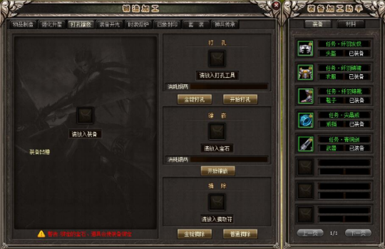 打孔镶嵌能为装备附上独有特性,参与者能用扩孔卡开展装备打孔,在根据镶嵌不同的宝石来为装备附上本人要想的强力特性。