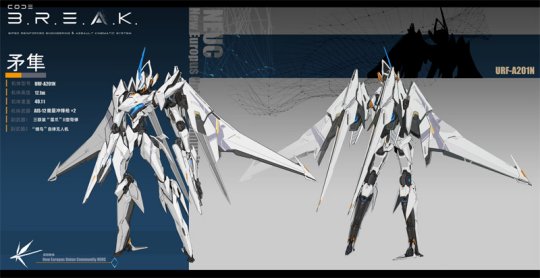 隶属于新协同体,善于上空战斗,关键应用双手所持的两把能力冲锋枪开展作战。除该装备外,矛隼还搭载了三联装“雷爪”II型导弹和“蜂鸟”自律无人机。醒目的航行背包为它供应了驾驭别的机体之上的操控性。