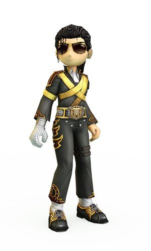 结合了黑人节拍蓝调与白人摇滚的与众不同乐风,时而高亢愤疾、时而优美灵动的嗓音,史无前例的舞姿,让你有着亿万跟随者。黑色灯芯绒套服,镶以夺目的金色配饰,闪耀绚丽的水晶手套,在举手投足间已引起全球的眼光。腰间的王者腰带,也是将你舞王的个人信息展露无疑。
