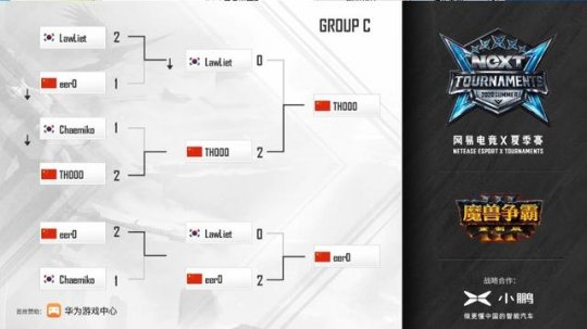 第四场赛事由eer0对决Chaemiko。第一局,地形图选到LR,Chaemiko首发山丘速开分矿,升到3级,并在野点抓到对方死骑,凭着级别优点,成功将其击倒。后续Chaemiko买飞艇,空投到对方主矿打骚扰,eer0击退对方后积极攻击,巫妖惨遭围杀,eer0缺点过大,打出GG。第二局,地形图赶到NI,Chaemiko故技重施,敲民兵速开二矿,但受到eer0影响,生长拖慢。中期彼此爆兵练级,eer0三英雄对决对方单英雄,主力军队全部抑制对方分矿,击倒对方二发1级的山丘,操控全局,拿下获胜。