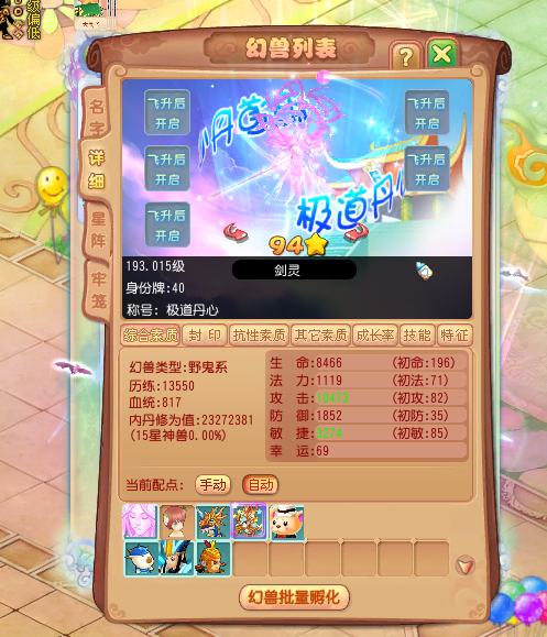 一仅有能力突破最终冠军的剑灵一直有最为牢靠的根基,例如成才和初始成才全至尊,上课五种课堂都2400分满分,血系1000分满分,和好运110分满分和历练26000分满分!是的,你没看错,好运的满分和历练的满分早就早已提高到110分和26000分!由于在这两个得分方面,用累计分数选购的紫霄好运果和历练三叶草各自都让幻兽的好运和历练提升了原先的極限,做到高些的顶峰!