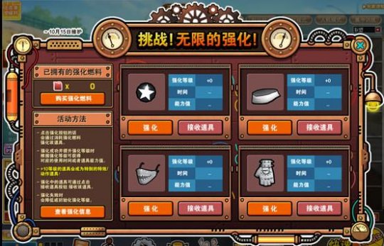 点击强化按钮,会根据耗费燃料强化该特技,不同强化级别耗费燃料不同。强化成功提高强化级别时,依据强化级别能够得到 对应的应用時间恐怕特技能力值。强化中的特技能够根据点击“接受特技”按钮接受该特技。(级别0的特技没法接受)强化不成功时会减少恐怕初始化强化级别。(初始化时即强化级别归0)接受后的特技在帐号转送选中择能力值。+10级别的特技会变成效果/姿势特技。