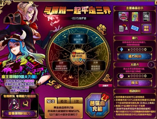 参与者可在活动界面或商城选购“大还丹”给芭蕉扇充能,充能能够得到 产品。抽取特技时会得到 “道力”个数,用于换取特技。芭蕉扇充能做到100%后,应用芭蕉扇能够制霸一种地区并得到 普遍礼品(红色或好面质量产品)