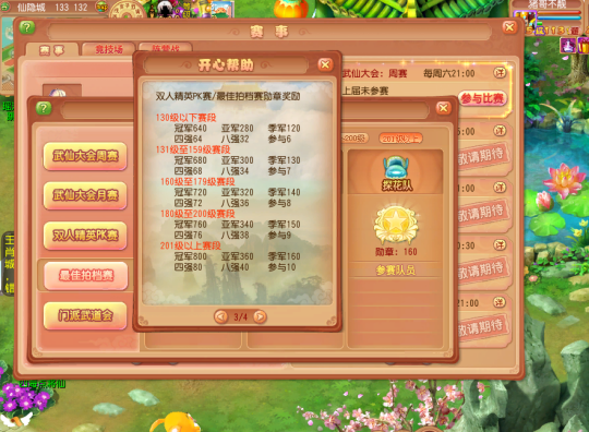 周赛加月赛的制度,为130级好面的参与者们供应了展现本人单挑能力的机遇,同一时间武仙大赛的奖赏也是非常丰富的,以130-159级组月赛奖赏为例,变成第一名不仅有武状元头衔,也有全套仙品装备、白碧石、999朵玫瑰、开天宝锥、+5补天石豪礼,或者至尊幻兽豪礼等精采大奖,超值诱惑,划得来众大神们齐参加哦!