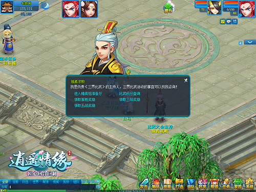 在逍遥世界里,不同样级角色之间的作战力是有区别的,要想参与每星期二夜里举办的三界比武活动,参与者级别最先得做到50级。不同样级参与者可能会进到对应的级别组别,这些参赛组各自为精英组(50—69级)、勇者组(70—89级)、霸者组(90—109级)、王者组(110级好面)。