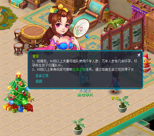 种豆得豆,种瓜得瓜,要想种出孩子,就得先种下性命的苗,为突出到这株苗,大家要先去做一种叫“性命之花”的任务。任务也不难,大家先赶到花园管家处接取任务。