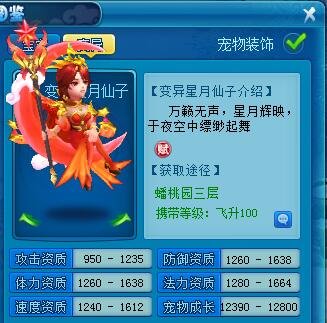 星月仙子的资格也是格外亮眼的,有四项都在1600好面,并且法术资格也是高达1664,全宠物中第一名!能够预料的是,星月仙子可能会是法宠新秀,这般漂亮又强力的宠物你难道不想练一只吗?
