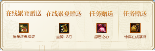 此次的五大奖励活动,多种奖赏助阵,考虑大伙儿的各式要求。9月1日起,要是每日登录游戏,铸造维护石、强化特技、强力情况等宝贵游戏特技,通通都游刃有余。当中不但有铸造强化特技“座骑+8符”,让大伙儿的座骑在强化+8时的成功直率接提高到100%。也有填满意外喜事的“周年典礼福袋”,随机可得到 奖励点券、装备评定石、强力情况等宝贵特技。这么轻轻松松就能得到 这么多的宝贵特技,让你每日都像获得季!