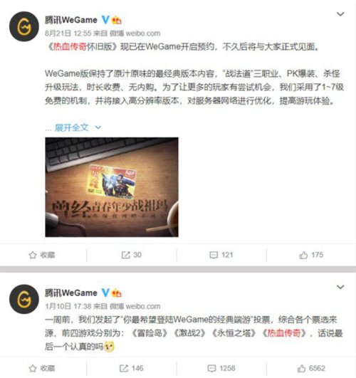 此次热血传奇登录WeGame平台,也要从2020年1月初的一场被戏称为“老端游解救谋划”的活动谈起。在这场由腾讯游戏WeGame平台在官微上进行的名为“你最期待登录WeGame平台的著名端游”投票评比活动中,参与者们各自选出了8款参与者心目中最为著名的端游,各自是:热血传奇、热血传奇手游、热血传奇、传奇手机游戏、热血传奇手机版、传奇手游、热血传奇手游和传奇手机游戏。最终跻身前四位的著名端游中,有三款全是盛趣游戏旗下的。各自是传奇手机版、传奇类手机游戏和传奇类手机游戏。
