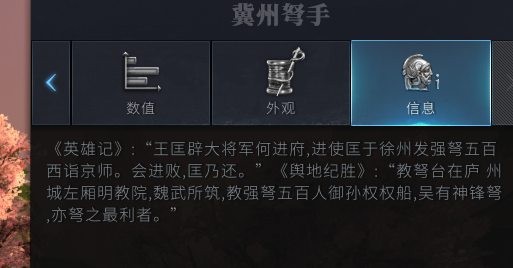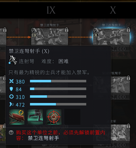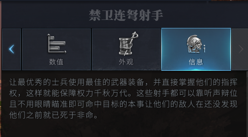 新开传奇中的禁卫连弩射手有着更快的填弹效率和略高过别的远程兵的操控性,基于弩这一法宝在真正历史中的设计特点,这类军队更加注重装填效果和射击频率,除此之外还可根据“迅速装弹”招式降低巨额填弹時间,而“狙击”招式可提升射击规模和破坏,在应对敌军远程兵时供应射程赞成。有效应用禁卫连弩射手与众不同的射击和装填机制和招式特点,将是不同于别的一切种类远程兵的与众不同游戏感受。做为连弩的发明者,诸葛亮无疑是最合适带领禁卫连弩射手出战的将领。