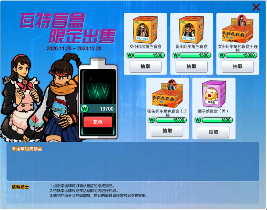 新独特好运球限购活动将于11月25日保全后宣布打开!新种类好运球特技“十连抽盲盒”强悍登录,初次参加两种十连抽盲盒就可以附加得到 热门独特人物随机礼包!此外,有着套服附加+50能力值的三色狮子盖也将协调一致上架!