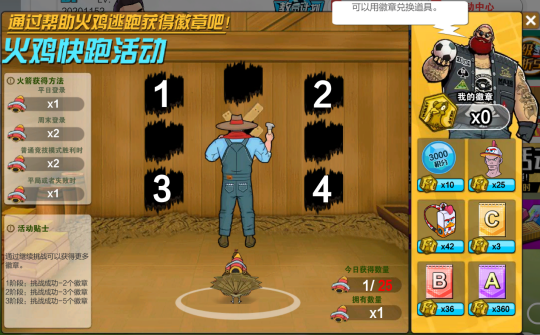 为了庆贺感恩节普遍创立了火鸡快跑活动,参与者可根据每天登录或参与比赛方式赛事得到 火箭设备,从而协助火鸡出逃得到 火鸡徽章!应用火鸡徽章可换取稀缺服装“萌鸡帽”、“萌鸡背包”、能力卡片、钻石vip等丰富礼物!
