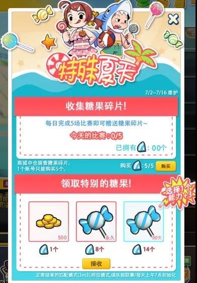 活动期内内每天总计打满5场,能够得到 糖果碎片 1个(每天限进行一次)。