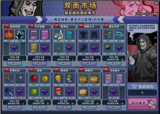 花费点券时可得到 花费金额10%的钻石,钻石可在“夜市”中换取产品。