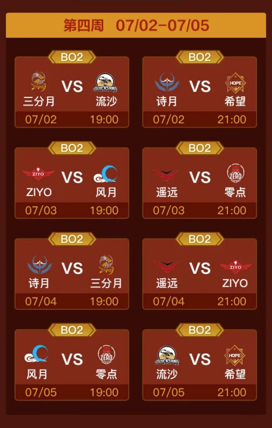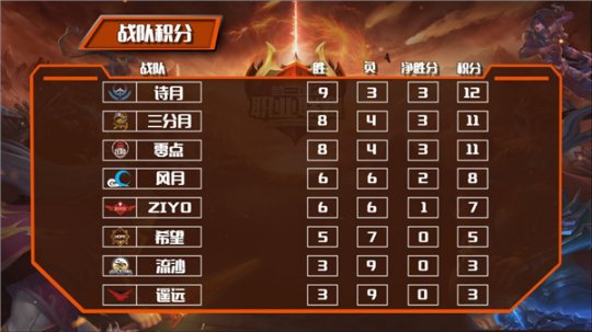 零点战队持续领先了两周,在第三周与诗月交锋以前,维持着3胜1平的0连败的优异战绩。诗月和零点两队交战,贯彻了“以战养战”的打法,全场团战持续,最后诗月极致把控赛场节拍,以2:0的比分重创零点,令其遭受了自开赛迄今的首个2连败。