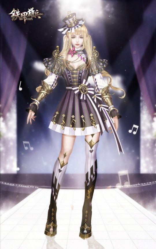 另一个军团外型则是来自于维多利亚·爱乐女祭司系列皮肤。这次S17赛季外型与爱乐女祭司全部,选用了精致的礼服设计,又以钢琴做为设计灵感将两种色调互相交叉,同一时间又以跳动的音符做为裙摆装点,显得既庄重又雅致!