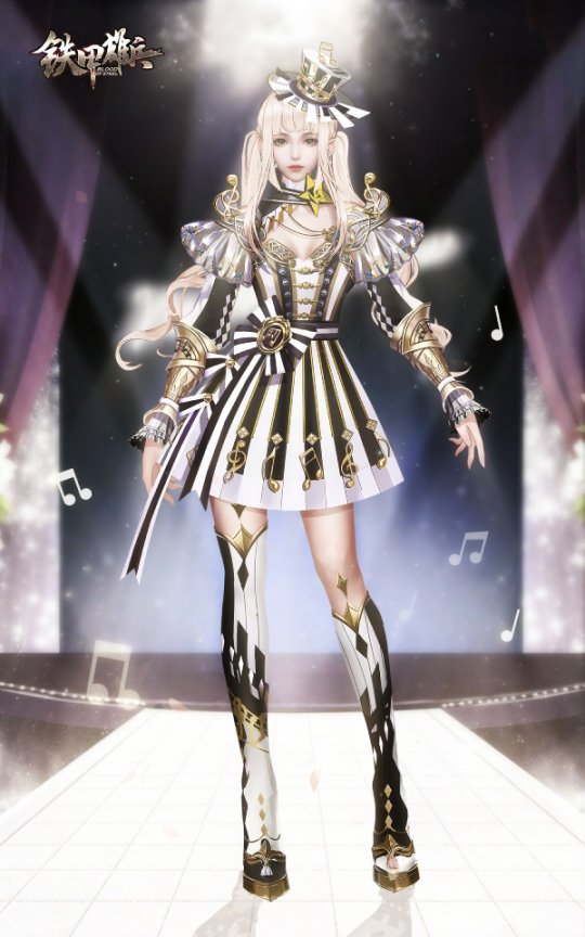 另一个皮肤则是来自于维多利亚的“甜爱交响乐团”、“奇爱管弦乐团”。精致的礼服设计,又以钢琴做为设计灵感将两种色调互相交叉,同一时间又以跳动的音符做为裙摆装点,显得既庄重又雅致!