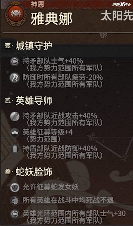 自然光是英雄出场还不足,要了解在古希腊,这些英雄全是获得奥林匹斯众神的庇护,所以本作参加了一种求神拜佛的程序,便是神恩机制,让参与者能够全部敬奉一种希腊神灵,给本人的國家部队英雄供应战力。