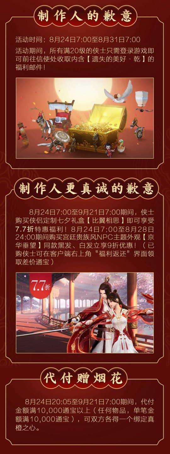 【七夕特惠奖励全员可享 各路侠士同欢庆】