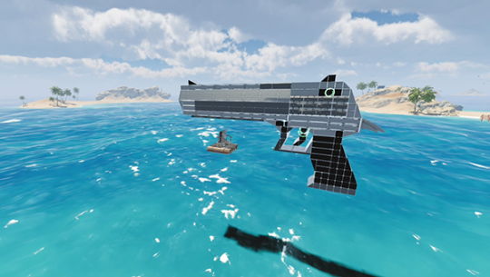 也是有参与者不考虑于交通工具,恐怕想在造船游戏里玩个射击游戏?!千万想不到造的这把荒漠之鹰还挺像回事,极致复原造形不说,能扣扳机还能打枪,是硬核参与者没错了。