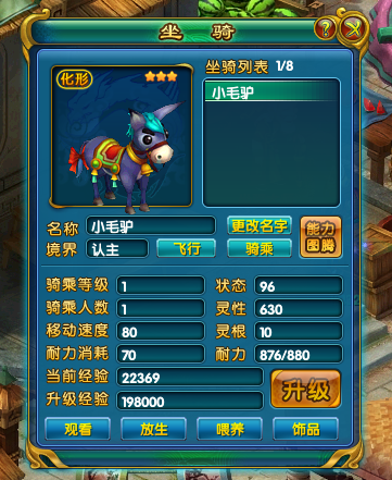 各位仙友见到座骑界面的这些数值是否有一些儿头晕眼花?无需担忧,让小仙我逐一为各位证明。