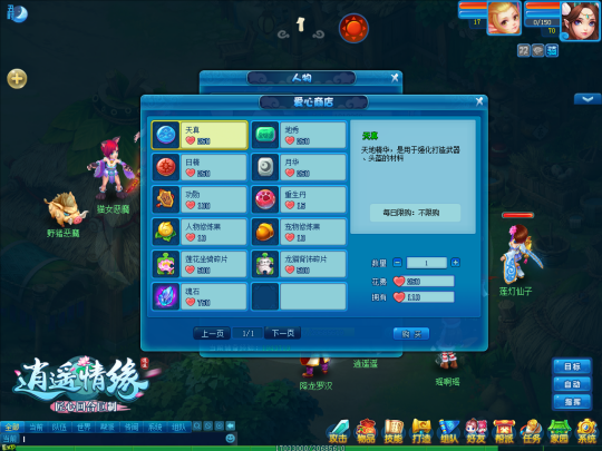协助别人是我国优质的傳統美德,逍遥世界一样倡导那样的美德,可是大家在协助别人以后会得到 爱心值奖赏。爱心值能够在爱心店铺选购制造装备所须要的的四种强化特技,也可选购洗宠必备的再生丹、积累到肯定总数得爱心还可选购莲花座骑和龙猫背饰等等。