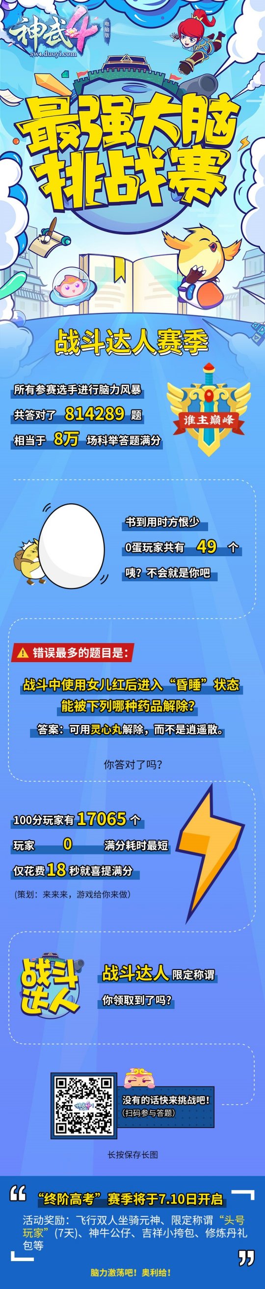 大脑飓风,等你来战!传奇手机版电脑版最强劲脑挑戰赛已有近2万名参与者喜提满分,最短花销时长仅18秒。“终阶高考”新赛季将于7月10日保全后宣布打开,参加所有核心赛季且分数都做到80分,还将附加得到 稀缺限制称呼“最强劲脑”,并有机遇被选定参加热血传奇手机版综艺录制,为本人的传奇手机游戏电脑版“最强劲脑挑戰赛”知识比赛之旅留下最合适见证。