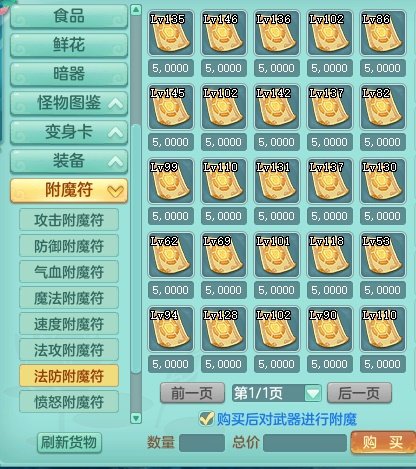 寄售中心附魔符、装备图纸店铺种类调度为默许显示符纸级别,同一时间,寄售中心附魔符提升对当今法宝附魔作用,勾选后选购附魔符能够立即对法宝开展附魔,不断为三界少侠开启更畅爽的购物感受。