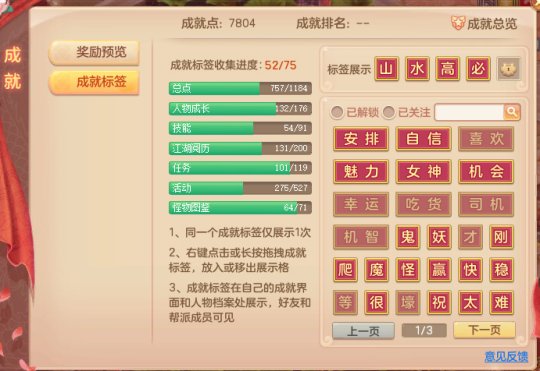 造就程序新创立造就标签打法和造就奖赏分页,进行不同造就就可以开启丰盛的造就标签,根据造就奖赏分页,能够查询全部造就奖赏的讯息,罢了开启的造就标签可随便组合,并在本人讯息档案界面中展现给朋友和帮派成员,进一步考虑造就党、搜集控特色化要求。