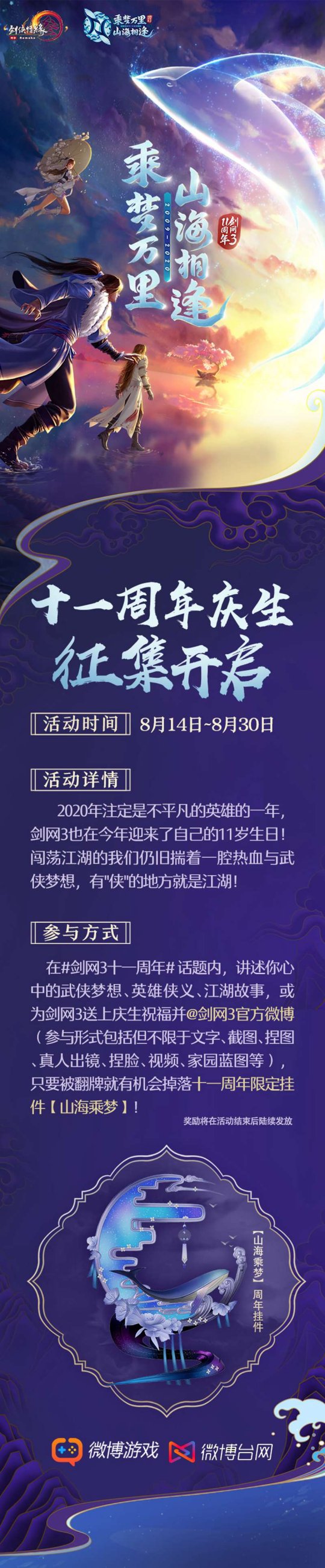 与此同一时间,B站活动也将于今天协调一致打开,由@剑网3官方视频 进行的#剑网3十一周年#议论邀请各位有爱侠士参加当中!9月4日前不管是在#剑网3十一周年#议论内发布动态,叙述你的江湖故事并@剑网3官方视频 ,還是在议论内发布花样庆生祝愿视频发稿,都有机遇被翻牌坠落十一周期限定挂件【山海乘梦】!更加让人意外喜事的是,在9月4日活动完毕后,视频播放量第一的侠士将得到 【索泰RTX2060显卡】一份哦!还等哪些?赶紧来一同庆生吧!