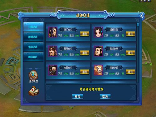 在好玩的传奇手游中点击左边的“书册”图标恐怕按“Esc”键,就能够见到游戏中的全部平时任务和今天活动的日程了,哪些活动何时開始,今日能够做些哪些平时任务都能在这儿一清二楚。