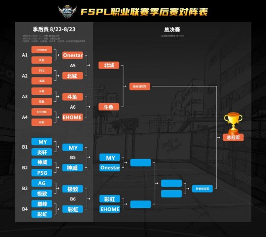 FSPL季后赛胜者组赛事中,凉茶单场砍下27分炎轩难挡Onestar跌入败者组,北城战队元老发威变成最大的黑马连胜结束了Onestar战队晋升胜者组决赛,斗鱼战队双杀EHOME战队与北城战队会师,Onestar、北城、斗鱼和EHOME战队率先晋升FSPL总决赛。