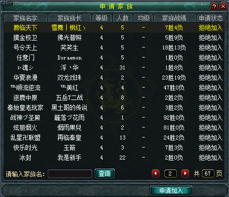 做为传奇sf中的帮派程序,家族打法一样各种各样,在参与者级别做到41级之后,在家族管理员处能够见到当今全部的家族名字列表,并能够开展申请。申请参加家族后,直到对方的家族族长愿意后便可参加。