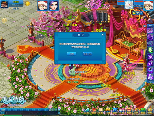 最先须要确定的是,游戏里的离异也和实际同样分成两种,最先说说较为普遍的合同离异吧。男女彼此同意离异的,能够组成队伍到月老处申请离异,月老在查明彼此的确是同意离异后,将现场消除婚姻关联。既然早已累觉不爱,比不上放开手,各奔前途吧。