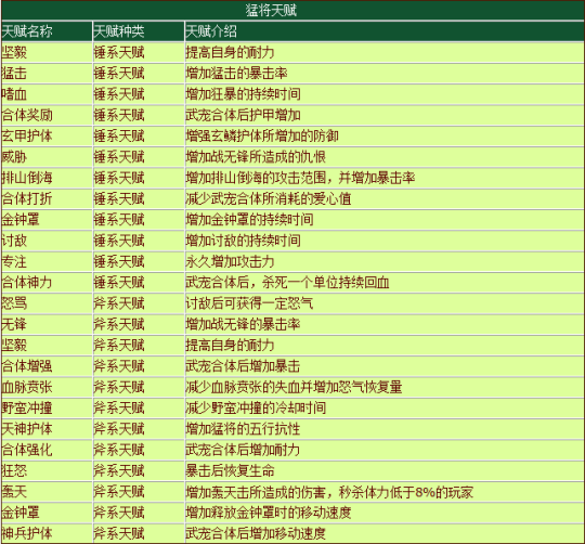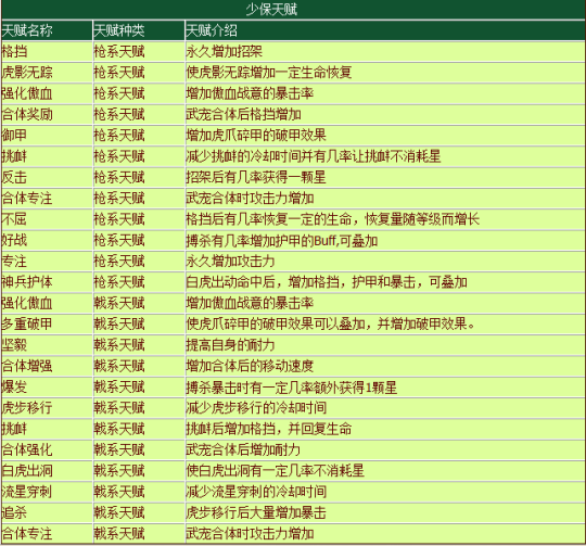 各职业天生资质表格: