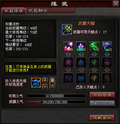 不同种类法宝,修炼后会得到 不同的天生资质。