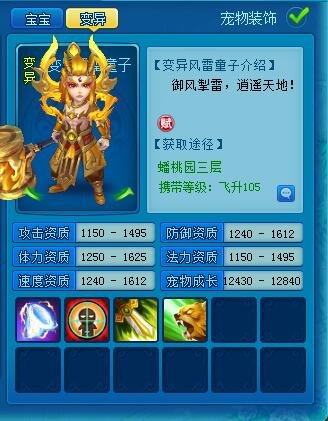 最终的这只是风雷童子,提升105级才可以带上!资格看上来肉度和效率都很美,可是这进攻能力有一些拉胯啊,难道是专门的肉宠?专享招式是穿风引雷。这个招式有一些儿独特,竟然能够在物理和法术之间随意地切换!并且要是暴击就马上应用另一种招式...