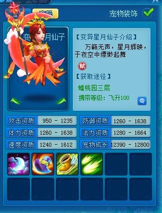 第二个再来看看这提升100级才可以带上的星月仙子吧。每次更换宠物都必定少不上讨人喜欢又性感的小妹姐,并且这星月仙子的资格可吓人了,刹那间就把雨师给比下来了。