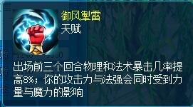 天生资质就更加有心思了,除了前三回合提升暴击外,也有一种崭新的成效,便是让它的进攻和法强同一时间遭受能量和魔力的危害!这就能够证明为何风雷童子的进攻和法强都那麼低了。