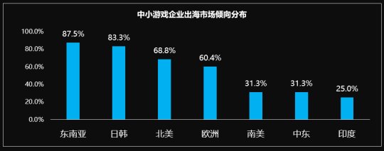 在国外市场挑选方面,因为西南亚和日韩市场用户举止、文化和游戏题材的诉求与我国相仿,中小游戏公司关于西南亚、日韩的趋向较高,占比均超出八成,对于成熟的北美和欧州市场,虽然遭遇猛烈的竞争,可是成熟市场中的用户高付费率仍然引起着很多的游戏公司,而中小游戏公司关于文化差别大的南美、中东和印度市场的趋向较低,是由于遭受南美、中东等地域网络,智能手机等根基建设发展所限。