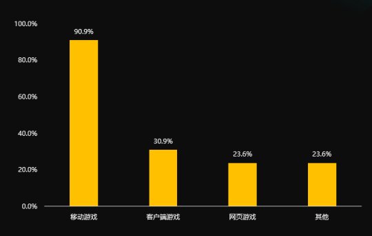 业务种类方面,中小游戏公司业务种类关键集中在挪动游戏周围,此次调研中,有挪动游戏业务的公司占比达90.9%;有顾客端游戏业务的公司占比为30.9%;有网页游戏业务的公司占比为23.6%;也有23.6%的公司有电比赛事经营、线下感受、游戏硬件配置销售等别的业务。