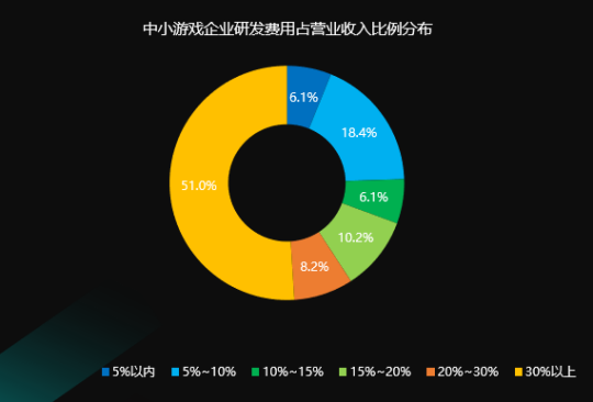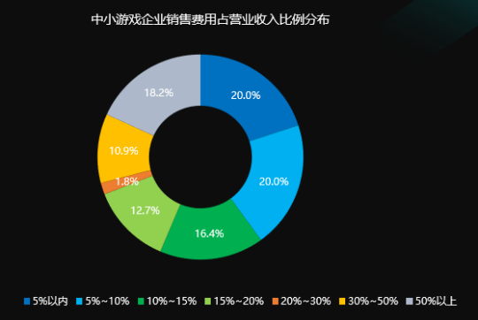 在开发花费方面,有51.0%的中小游戏公司开发花费占运营收益占比超出30.0%,能够看出绝大多数中小公司也格外重视开发方面的付出,过去纯加盟发售的方式愈来愈少。在销售花费方面,有69.1%的中小游戏公司销售花费占运营收益占比低于20%,同一时间也是有18.2%的公司销售花费占运营收益占比超出50%,展现两极化走势,贴近七成中小公司关于营销花费付出亏空。将来由于中小公司更加重视自研自发,营销花费付出亏空的状况预估将暴发变化。
