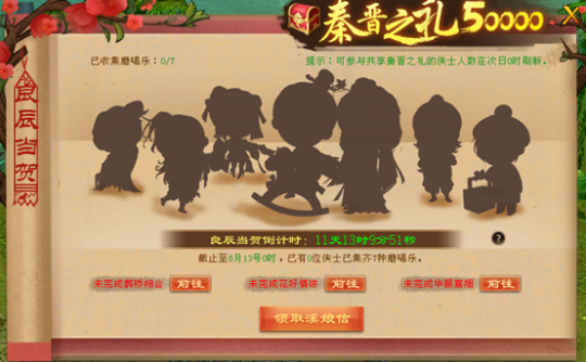 小提醒:还可在8月25日21时至9月2日24时活动期内,进到良辰当贺活动中,领到齐三郎与溪娘打算的秦晋之礼。每份秦晋之礼内含3级秘银、3级棉布或点金玉。